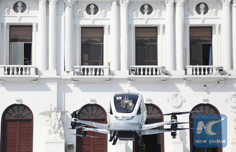 An Ehang drone in the test flight. (Xinhua photo/Chen Ji)