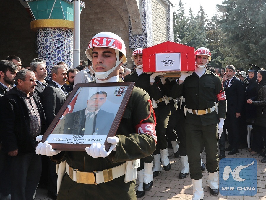 ANKARA, Feb 10 (Xinhua) -- Nine Turkish soldiers were killed and eleven others were injured in cross-border operation in Syria's Afrin on Saturday, Turkish military said in a statement.