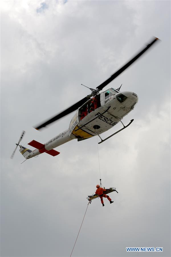 Rescuers from the Philippine Air Force participate in the Nationwide Simultaneous Earthquake Drill in Quezon City, the Philippines, Feb. 15, 2018. (Xinhua/Rouelle Umali)