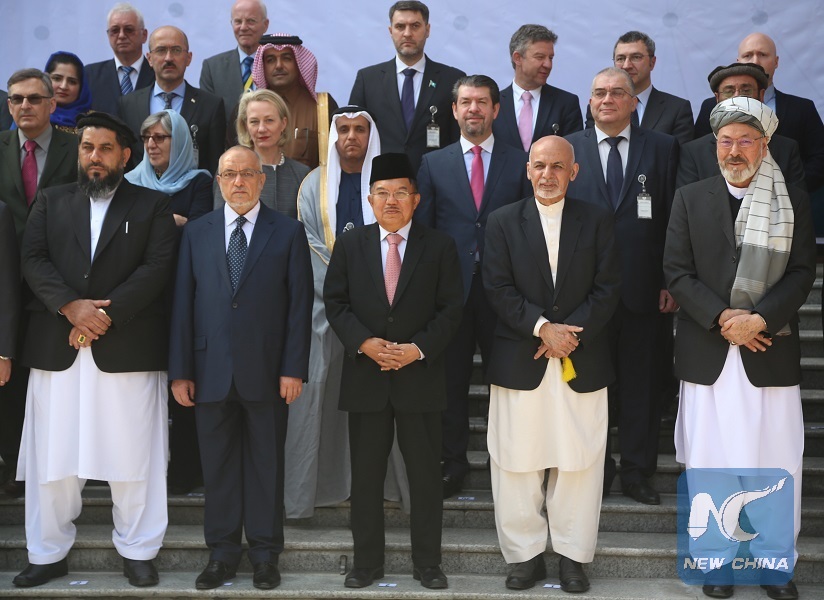 Afghan President Mohammad Ashraf Ghani (2nd R) poses for photos during the "Kabul Process for Peace and Security Cooperation" conference in Kabul Feb. 28, 2018. (Xinhua/Rahmat Alizadah)
