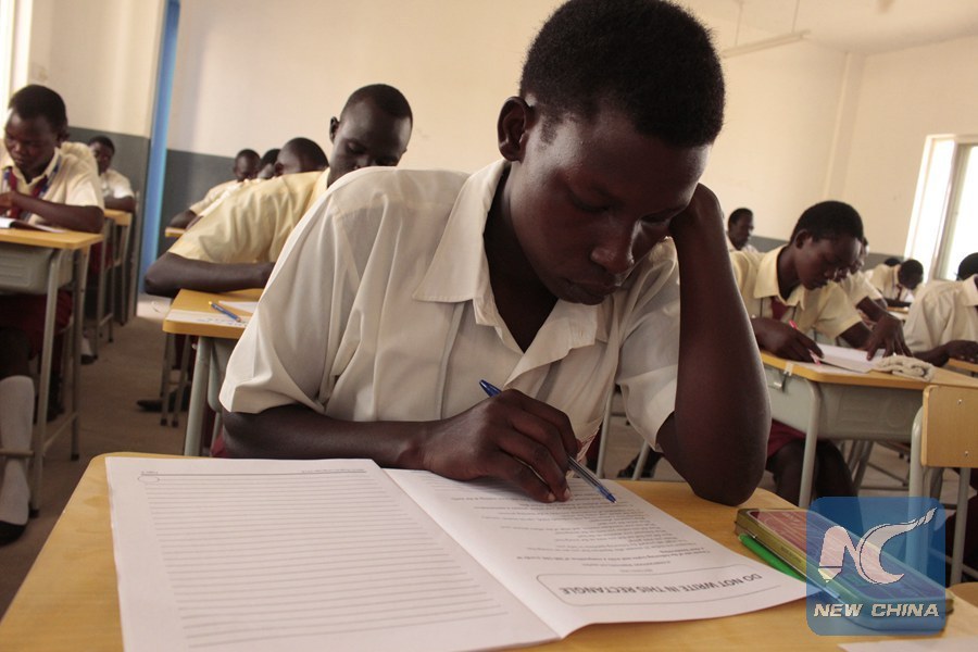 Local students sit for the university entry examinations at the China-aided Jubek Model Secondary School in Juba, capital of South Sudan, Feb. 12, 2018. (Xinhua/Gale Julius)