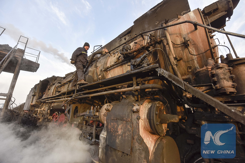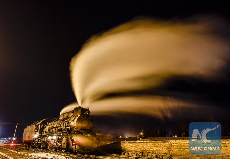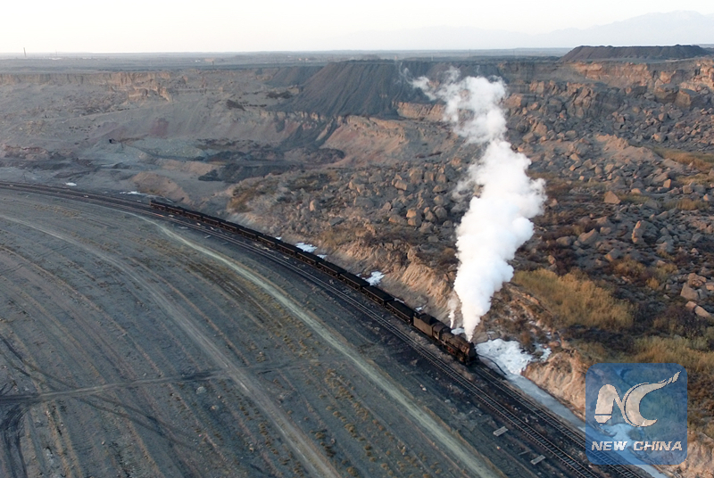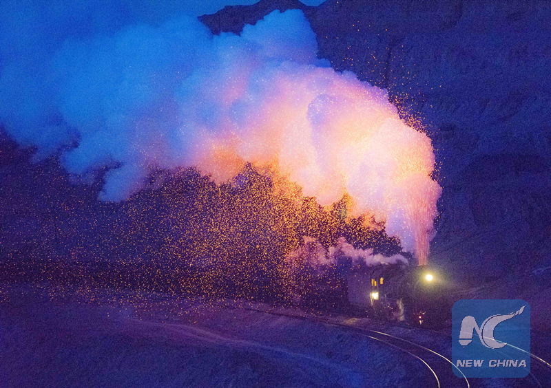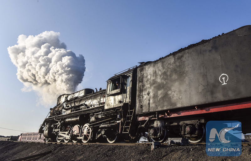 A steam train in Sandaoling. (Xinhua/Zhao Ge)