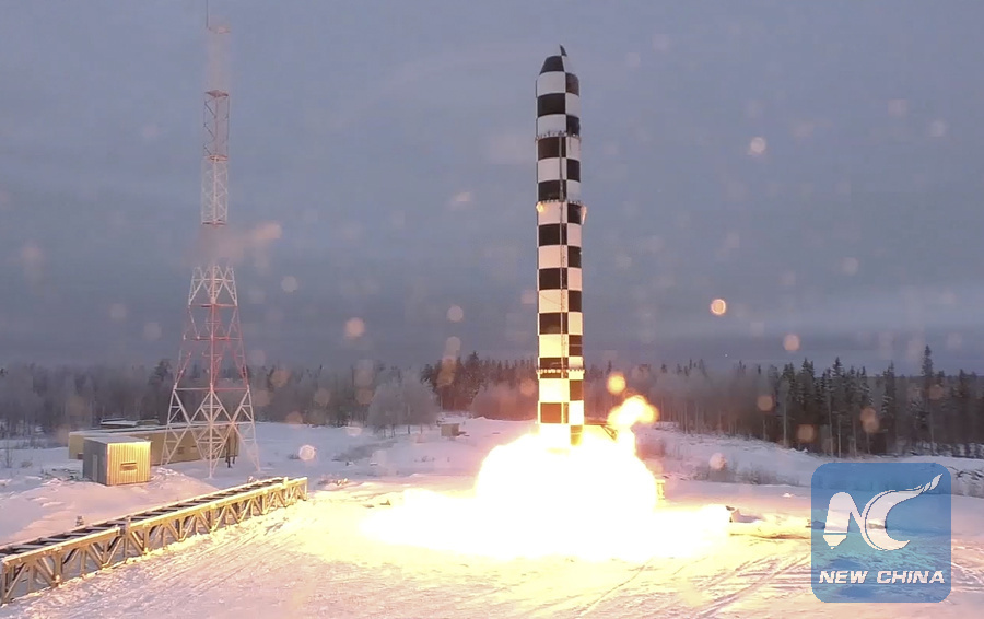 MOSCOW, March 13 (Xinhua) -- Russia will soon hold another pop-up test of its latest Sarmat intercontinental missile at the Plesetsk cosmodrome, said Valery Gerasimov, chief of the General Staff of the Russian Army on Tuesday.