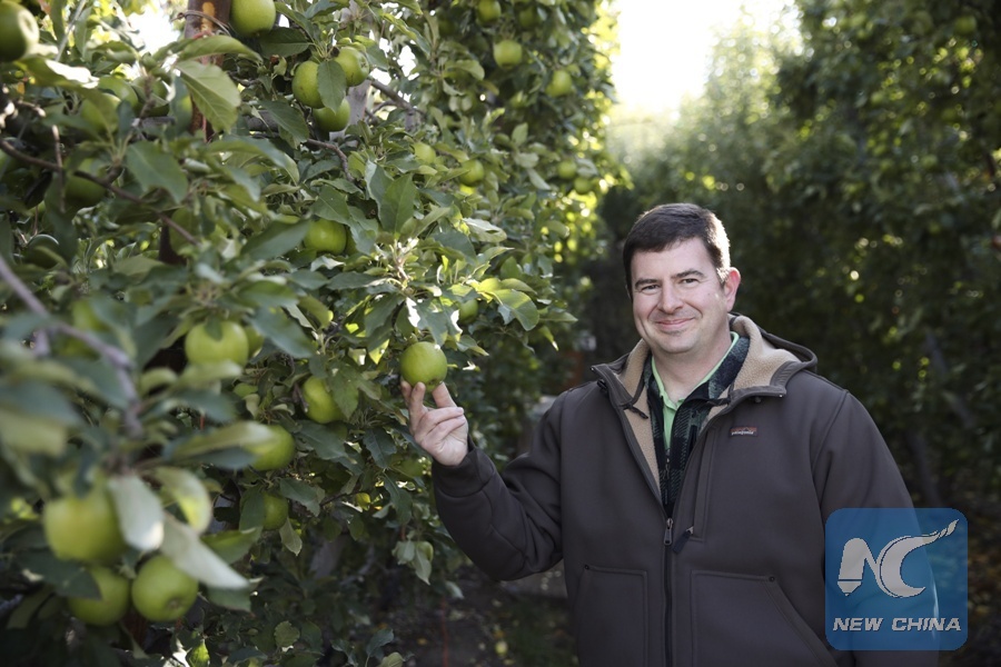 File Photo: Chris McCarthy, CEO of Auvil Fruit Company, poses for a photo in an appleorchard of Auvil Fruit Company in Wenatchee, Washington state, the United States, on Nov. 3, 2017. (Xinhua/Wang Ying)