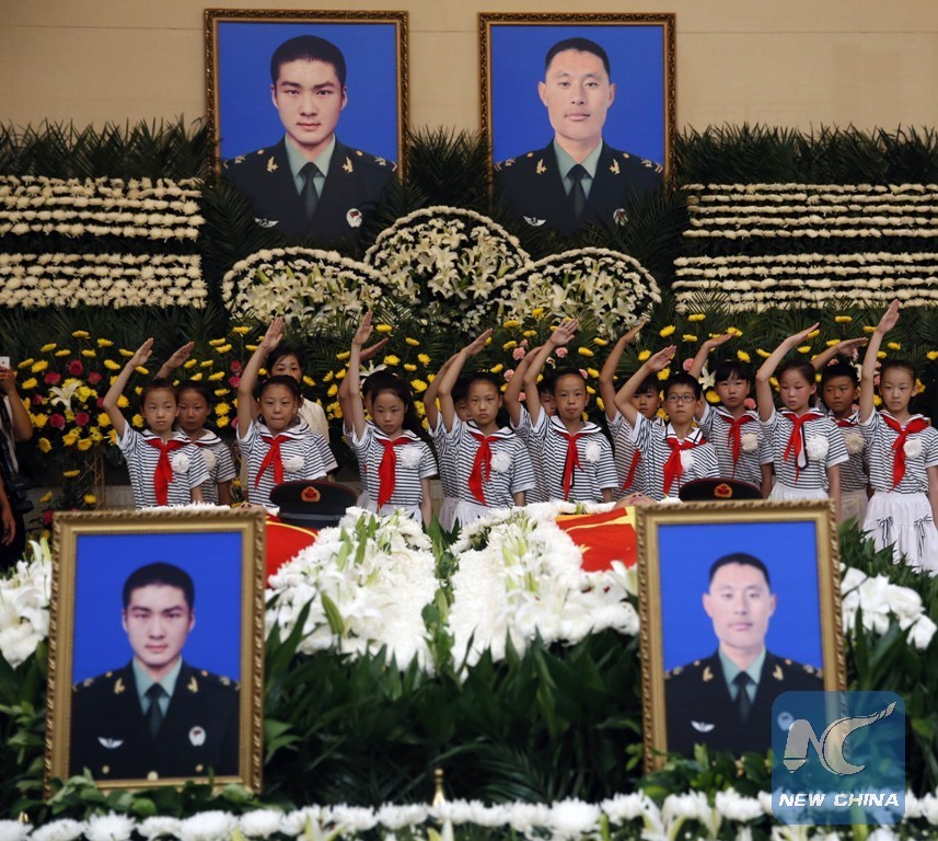 A funeral ceremony is held to bid farewell to deceased Chinese UN peacekeeper Yang Shupeng and Li Lei in Xuchang, central China's Henan Province, July 21, 2016. Li Lei and Yang Shupeng were killed on the evening of July 10 after a mortar shell hit their armored vehicle during fighting between two army factions in Juba, capital of South Sudan. (Xinhua/Yin Gang)