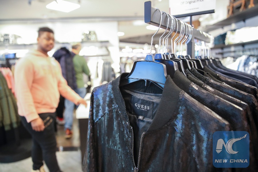 Clothes made in China are for sale at a Macy's store in New York, the United States, on March 22, 2018. (Xinhua/Wang Ying)