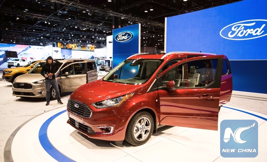 Photo taken on Feb. 8, 2018 shows a Ford Transit Connect at the Chicago Auto Show, the United States. (Xinhua/Joel Lerner)