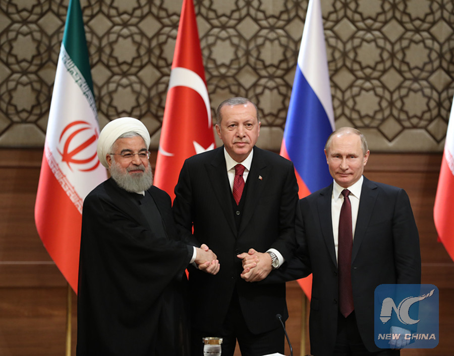 ANKARA, April 5 (Xinhua) -- Russia, Turkey and Iran have put aside their rivalries on regional issues to forge a dialogue mechanism on Syria's future while the U.S. is poised to pull out of the war-torn country.