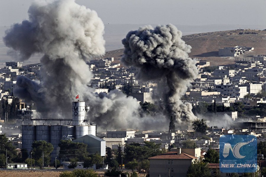 File Photo: Smoke rises after a U.S. air strike on Islamic State terrorist group in Kobani, Syria, Oct. 11, 2014. (Xinhua/Cihan)