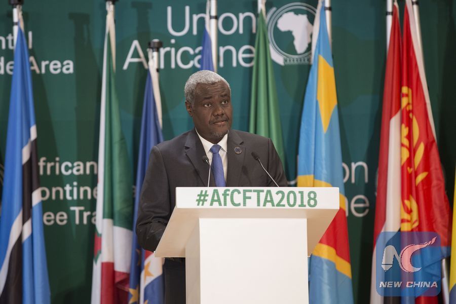 ADDIS ABABA, April 10 (Xinhua) -- The chairperson of the African Union (AU) Commission, Moussa Faki Mahamat, on Monday said he is keen to closely work with Sierra Leone's newly-elected President Julius Maada Bio in implementing continental priorities within the framework of Agenda 2063.