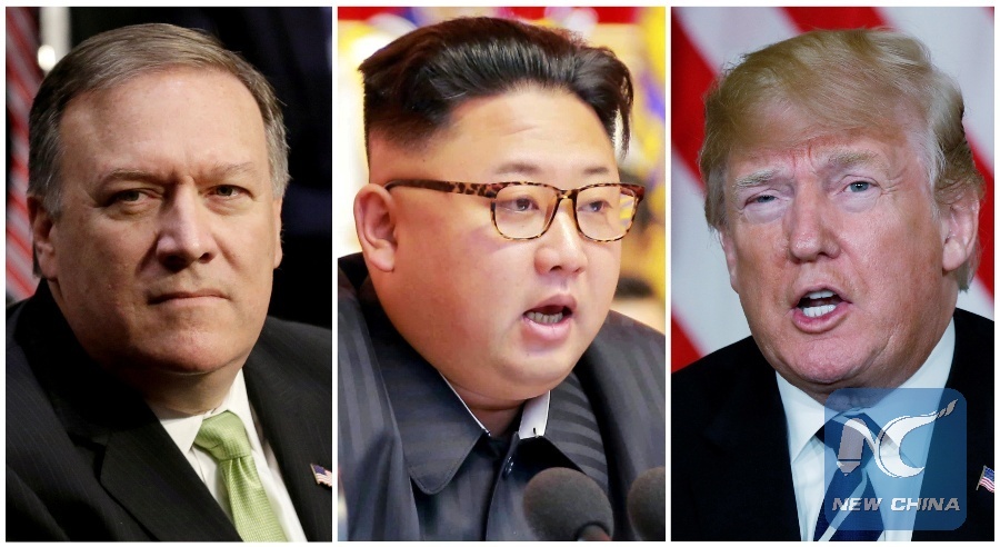 WASHINGTON, May 9 (Xinhua) -- U.S. Secretary of State Mike Pompeo said Wednesday that the time and venue of the meeting between the Democratic People's Republic of Korea (DPRK)'s top leader Kim Jong Un and U.S. President Donald Trump have been "locked in."