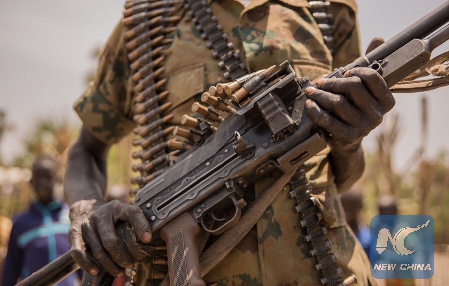 File Photo: A rebel soldier poses with his gun in Touch Riak, Leer county, South Sudan, on March 7, 2018, where famine has been declared since February 2017. (Xinhua/AFP)