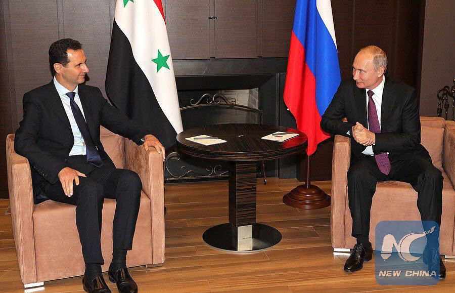 DAMASCUS, May 17 (Xinhua) -- Syrian President Bashar al-Assad met with his Russian counterpart, Vladimir Putin, in Russia's city of Sochi on Thursday, saying it's an opportunity for future peace talks, the Syrian presidential media office said.