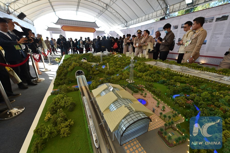 File photo taken on Dec. 22, 2017 shows people visit a model of the first phase of the high-speed railway linking Bangkok with Nakhon Ratchasima province in Pak Chong, Thailand. (Xinhua/Li Mangmang)