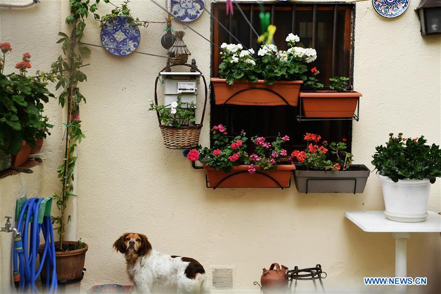 A dog is seen in the yard of a house at El Escorial, Spain, on June 5, 2018. (Xinhua/Guo Qiuda)