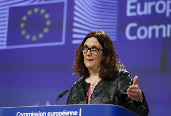 "We regret that the United States left us with no other option than to safeguard EU interests," EU trade commissioner Cecilia Malmstrom said.