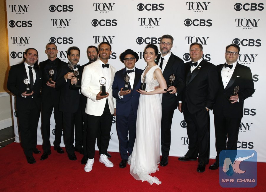 NEW YORK, June 10 (Xinhua) -- Broadway musical "The Band's Visit," which tells the story that an Egyptian police orchestra stranded for a night in Israel, swept the Tony Award with 10 trophies on Sunday, including the award for best musical.