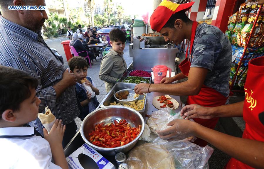 A Lebanese vendor sells snacks as people go shopping to celebrate the Eid al-Fitr in Beirut, Lebanon, on June 15, 2018. (Xinhua/Bilal Jawich)