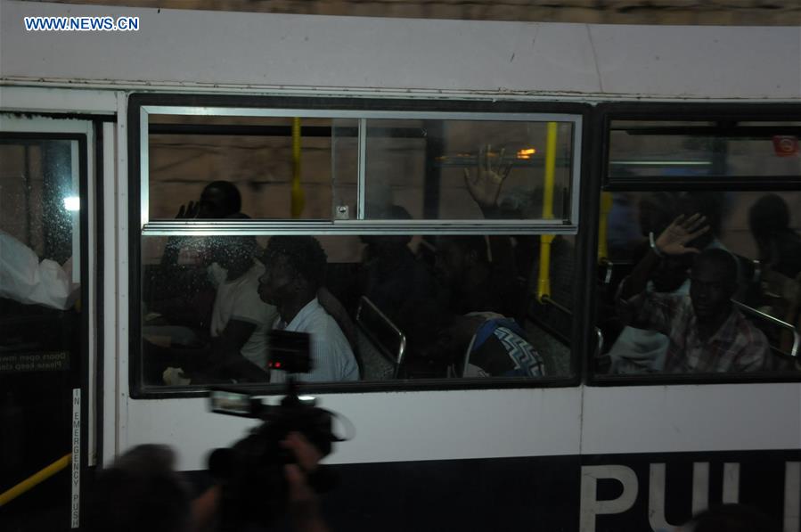 Migrants are seen in a police van after they disembarked from the migrant rescue vessel MV Lifeline at Boiler Wharf in Senglea, Malta, on June 27, 2018. The migrant rescue vessel MV Lifeline arrived in Malta on Wednesday, resolving a week-long international standoff over the vessel's fate. (Xinhua/Yuan Yun)