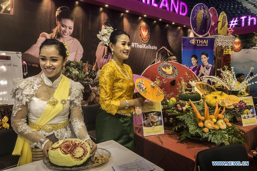 Photo taken on July 6, 2018 shows the Thai exhibition area during the Travel and Tourism Fair (TTF) in Kolkata, India. The TTF is held at Netaji Indoor stadium from July 6 to 8. (Xinhua Photo/Tumpa Monday)