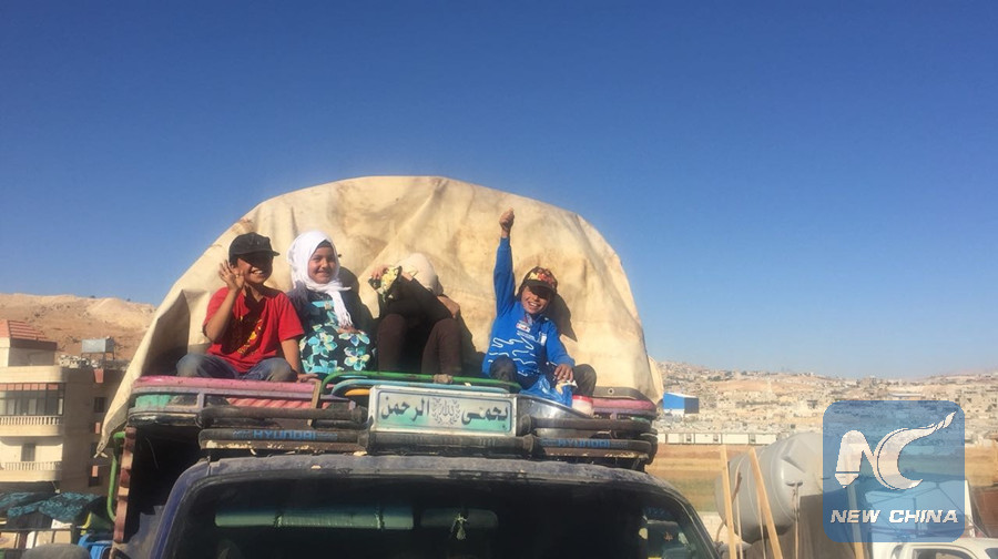 Around 850 Syrian refugees from Aarsal in Lebanon returned to their homeland Monday though Zemrani border crossing. (Xinhua photo)