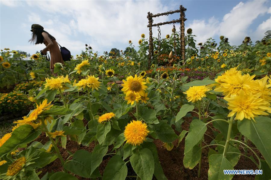 A visitor views the floral displays at the Singapore Garden Festival in Singapore, on July 27, 2018. The 7th Singapore Garden Festival is held from July 27 to Aug. 3 at the Gardens by the Bay. (Xinhua/Then Chih Wey)