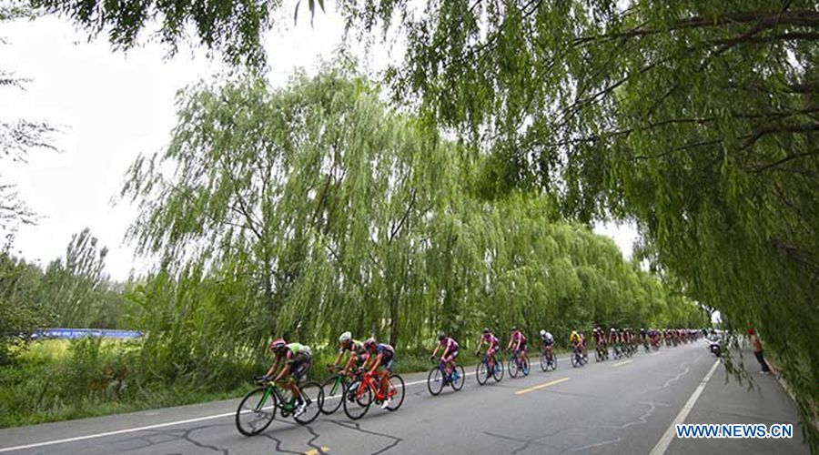Cyclists compete in the eighth stage of the Tour of Qinghai Lake in northwest China's Gansu Province on July 29, 2018. (Xinhuanet Photo by Jia Haiyuan)?