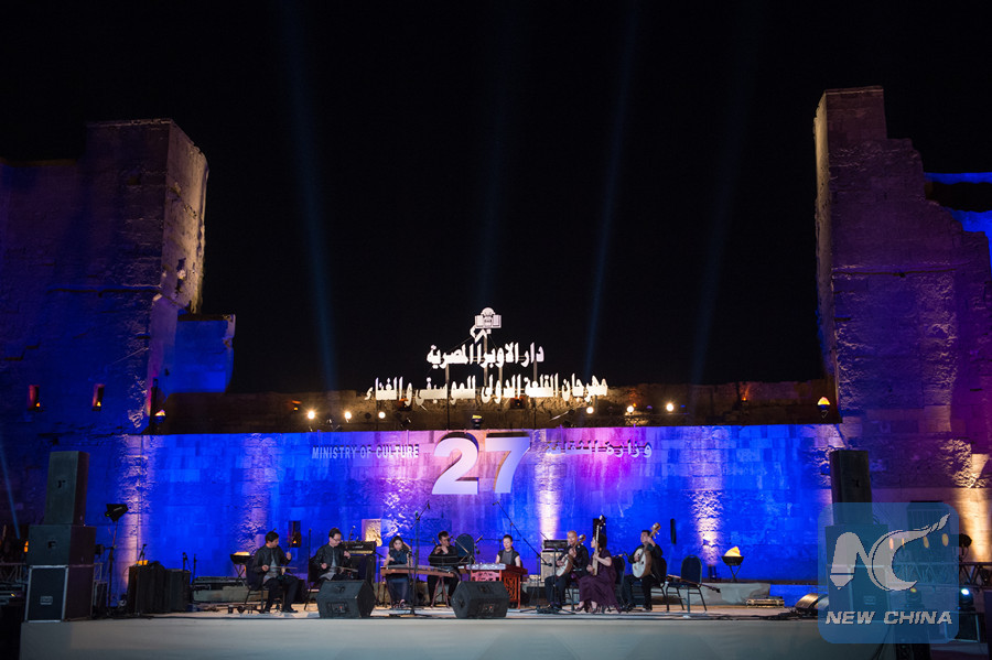 A folk music concert, performed by the Forbidden City Chamber Orchestra of the Chinese Conservatory of Music, is held in Cairo's renowned Saladin Citadel on August 13, 2017. (Xinhua photo)