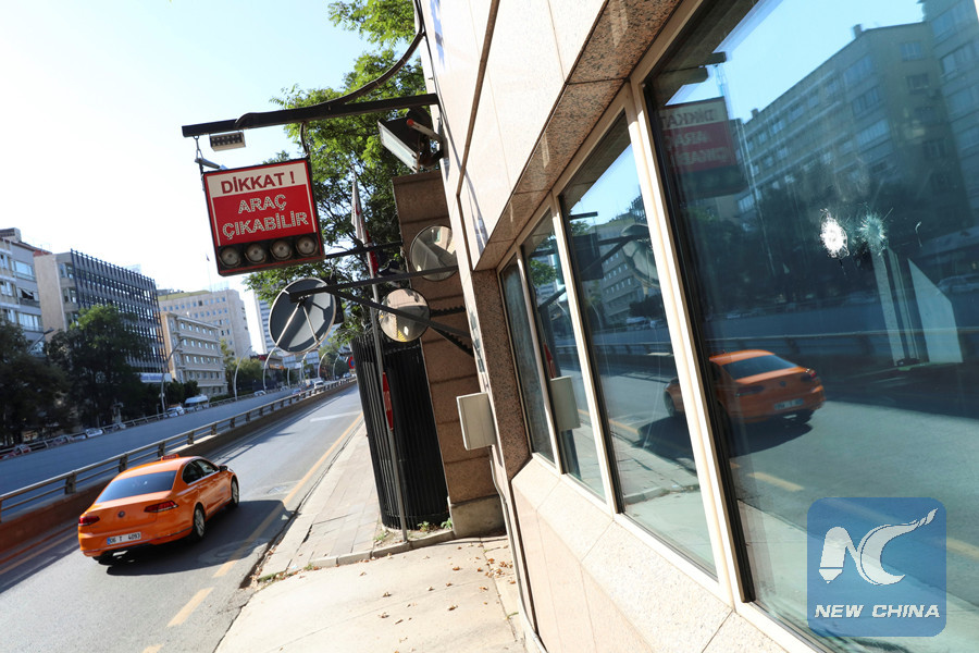 ANKARA, Aug. 20 (Xinhua) -- Unidentified assailants fired gun shots at the U.S. embassy in Ankara early Monday, hitting a window of a security cabin but causing no casualties, local media reported.
