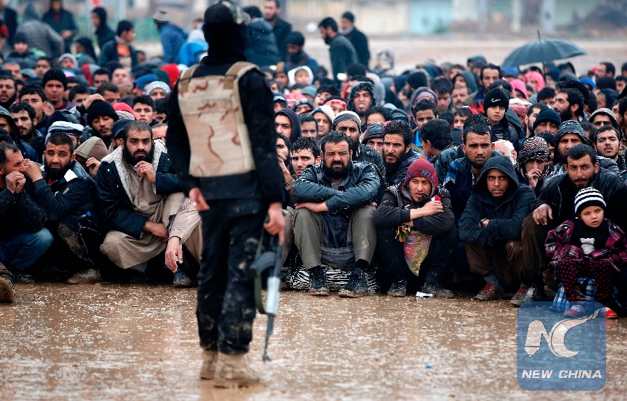 Iraqi civilians fleeing the city of Mosul sit under the rain on March 23, 2017 as Iraqi forces advance in their massive operation to retake Iraq's second city from jihadists of the Islamic State group. (AFP Photo)