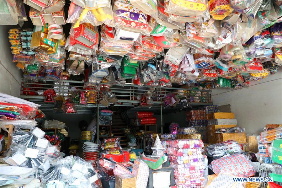 Photo taken on Aug. 21, 2018 shows a warehouse of paper votive objects in the Dao Tu village of Vietnam's northern province of Bac Ninh. (Xinhua/Wang Di)