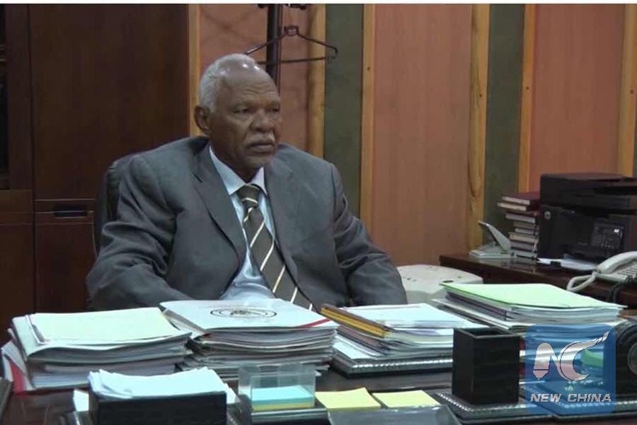 Sudanese Presidential Assistant Awad Ahmed Al-Jaz talks about the upcoming Beijing Summit of the Forum on China-Africa Cooperation during an interview with Xinhua News Agency in his office in Khartoum, Sudan, on Aug. 30, 2018. (Xinhua photo)