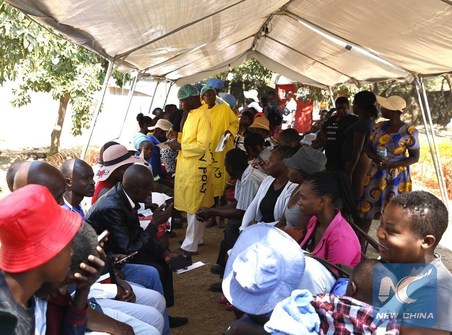 Cholera patients receive treatment at a local hospital in Harare, Zimbabwe, Sept. 12, 2018. Zimbabwean police have banned public gatherings in the capital Harare following a cholera outbreak that has killed 21 people and left more than 3,000 people hospitalized. (Xinhua/Shaun Jusa)