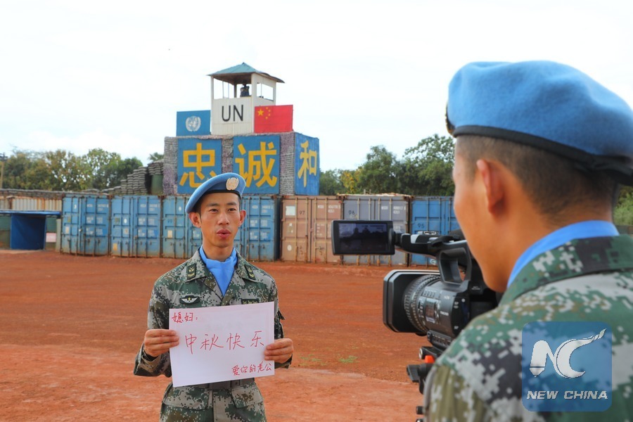 Zhang Xiangfa, a soldier of a group of 331 Chinese peacekeepers who arrived in South Sudan in September, celebrated his first Mid-Autumn Festival in the faraway land after his marriage.