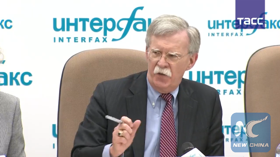 MOSCOW, Oct. 23 (Xinhua) -- The United States will file a formal notice of its withdrawal from the Intermediate-Range Nuclear Forces Treaty (INF Treaty) "in due course," U.S. national security advisor John Bolton said here Tuesday.