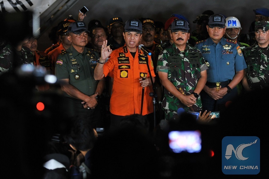 Head of the Indonesian national search and rescue office Muhammad Syaugi (C) speaks during a press conference at the Tanjung Priok port, Jakarta, Indonesia, Oct. 31, 2018. (Xinhua/Veri Sanovri)