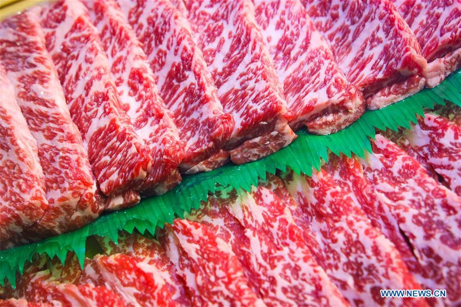 Photo taken on Nov. 7, 2018 shows beef from Australia at the Food & Agricultural Products area during the first China International Import Expo (CIIE) in Shanghai, east China. Various food from all over the world are exhibited in the CIIE. (Xinhua/Liu Dawei)