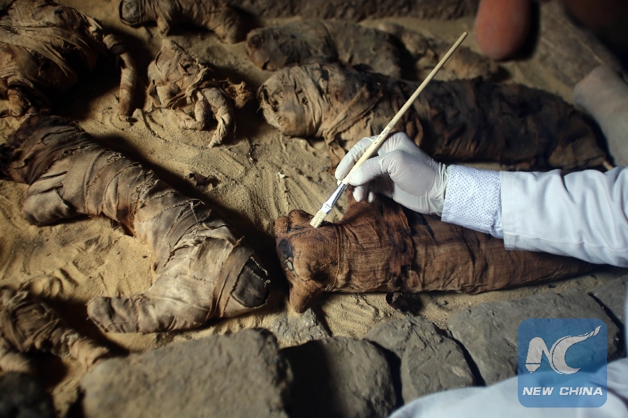 The discovery was made by an Egyptian archaeological mission during excavation works at the area located on the stony edge of King Userkaf pyramid complex in Saqqara Necropolis, al-Anany told Xinhua.
