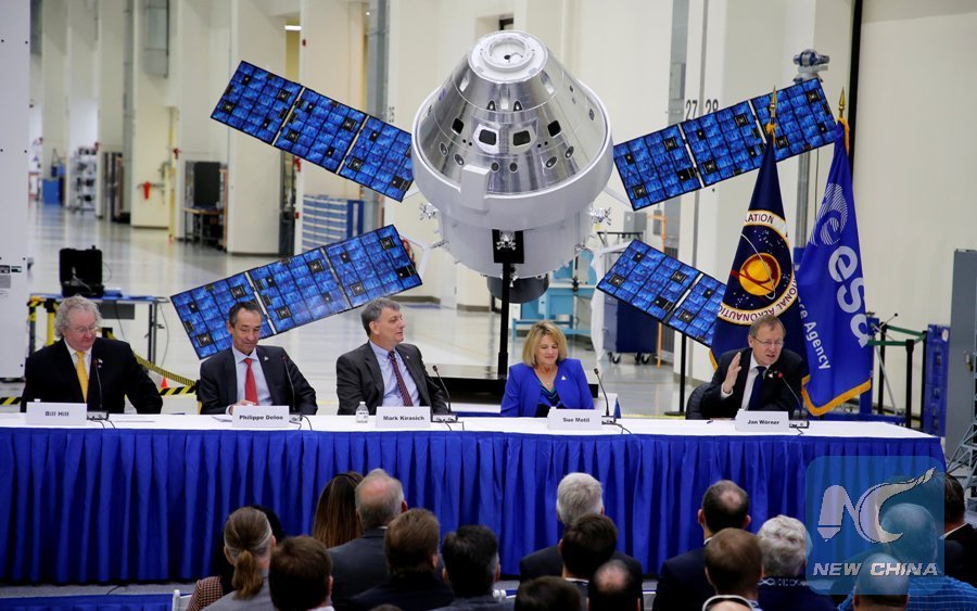 WASHINGTON, Nov. 16 (Xinhua) -- The United States space agency NASA and European officials celebrated in Florida's Kennedy Space Center on Friday the arrival of a powerhouse that would propel NASA's new capsule to the moon in an unmanned flight planned for 2020.