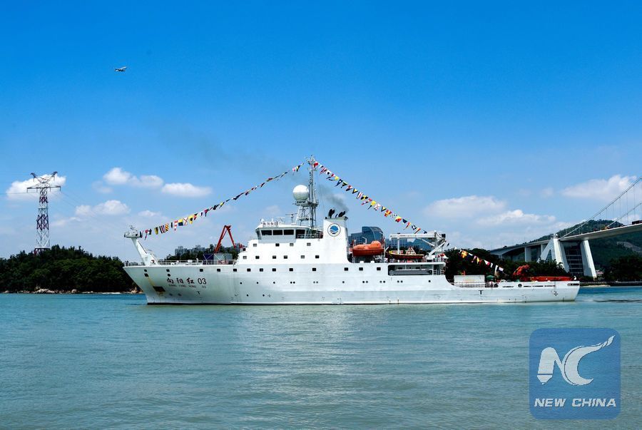 File photo shows Chinese oceanographic research ship Xiangyanghong 03 leaves Xiamen, southeast China's Fujian Province, July 14, 2018. (Xinhua)