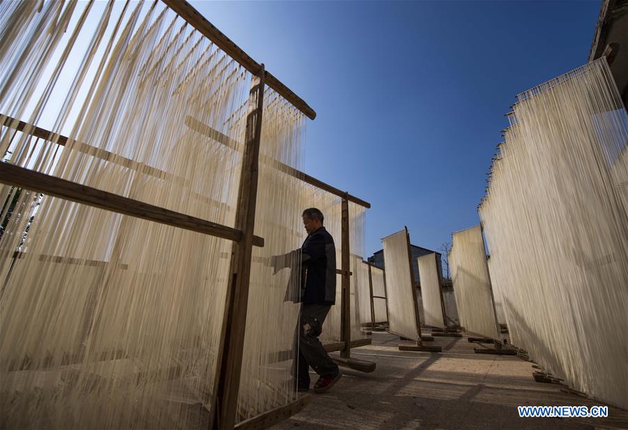 Villagers dry noodles in Xinyu City of east China's Jiangxi