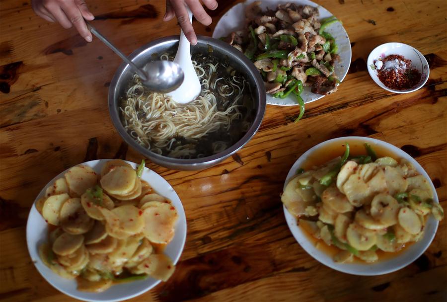 A girl of the basketball team prepares dishes for the team during lunch time at Haoba central school in Junlian County of Yibin City in southwest China's Sichuan Province, on Dec. 8, 2018. As lodging students, the players have to cook for themselves during weekends. Situated in the vast Wumeng Mountains of southwest China's Sichuan Province, Haoba central school is a nine-year school providing primary education and middle school education, just like other schools in this mountain area. However, a basketball team formed by female students made the school quite famous in its township, even in neighboring cities. The team was founded in 2005 by Fan Qingang, a 46-year-old teacher who used to teach Chinese in Haoba central school. As the coach of the team, Fan not only teaches the girls to play basketball but also tries to help them develop a habit of exercising and a healthy life. Up to now, this team has won 10 champion titles in different regional basketball games for middle school students. "I hope that in the future, the students here will be given more opportunities to participate in basketball, football and other sports, because sports will offer them more chances to walk out of the mountains and broaden their horizon," Fan said. (Xinhua/Liao Yujie)