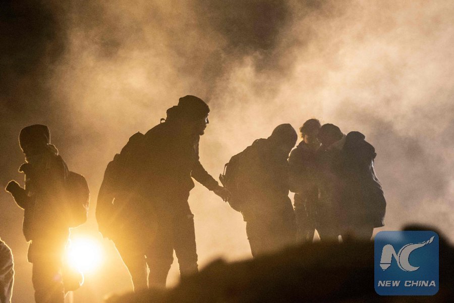 LOS ANGELES, Jan. 1 (Xinhua) -- U.S. Customs and Border Protection (CBP) agents shoot tear gas Tuesday to deter about 150 migrants attempting to breach the U.S.-Mexico border fence into California.