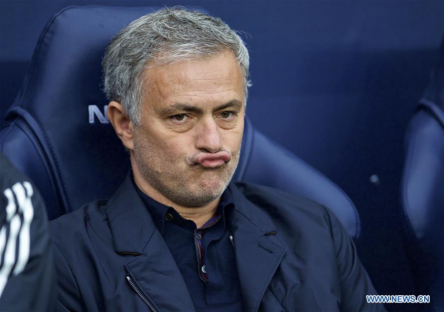 Manchester United's manager Jose Mourinho is seen before the English Premier League match between Manchester City and Manchester United at the Etihad Stadium in Manchester, Britain on April 7, 2018. Manchester United won 3-2. (Xinhua/Stringer)