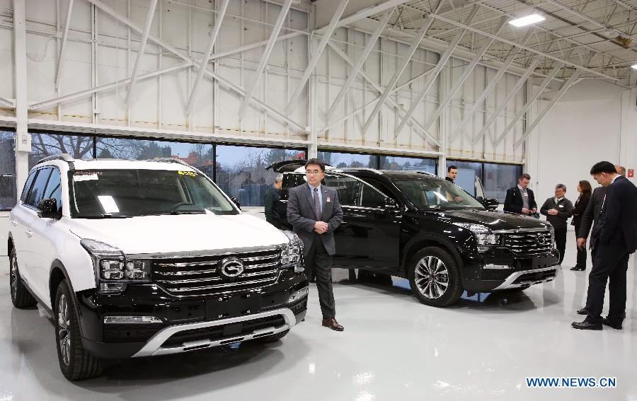 This photo taken on Jan. 15, 2019 shows vehicle models on display at the newly-opened R&D center of Guangzhou Automobile Group (GAC) in Detroit, the United States. Guangzhou Automobile Group (GAC) unveiled a research and development center in Detroit, the U.S. state of Michigan. (Xinhua/Xu Yuan)