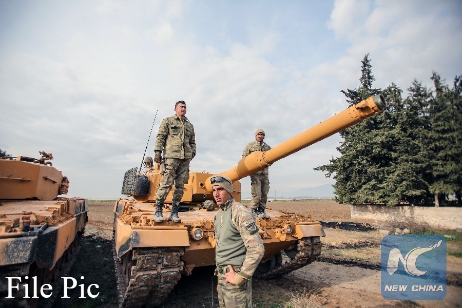 Turkish soldiers prepare their tanks near the Syrian-Turkish border, at Reyhanli district in Hatay, Turkey, on Jan. 21, 2018. (Xinhua File photo)