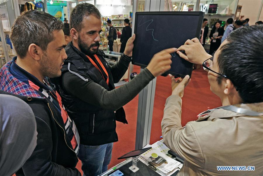 Indian businessmen try out an electronic board at the Yiwu International Trade City in Yiwu, a city famous for selling small goods in east China's Zhejiang Province, Oct. 21, 2018. Figures released by the Hangzhou Customs showed that the trade volume between Zhejiang and countries along the Belt and Road in 2018 stood at 896.66 billion RMB yuan (132.3 billion U.S. dollars), growing by 12.3 percent year on year, accounting for 31.4 percent of the province's total foreign trade volume and 10.7 percent of China's trade with countries along the Road and Belt. (Xinhua/Tan Jin)