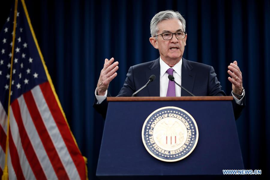 U.S. Federal Reserve Chairman Jerome Powell speaks during a press conference in Washington D.C. Jan. 30, 2019. The U.S. Federal Reserve on Wednesday left interest rates unchanged, in line with market expectations, reaffirming its position to be patient with future rate hikes. (Xinhua/Ting Shen)