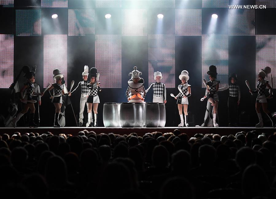 Performers from Russian Circus on Ice perform during the show "A Winter Fairy Tale" in Wiesbaden, Germany, on Feb. 3, 2019. (Xinhua/Lu Yang)