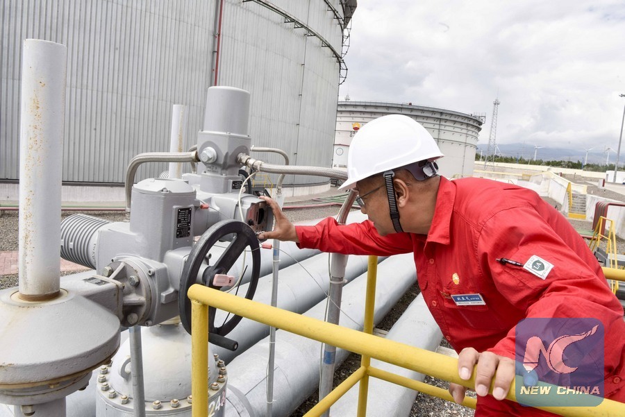 Yao Yage, head of China-Kazakhstan crude oil pipeline's operation center in the Alataw Pass, works at the operation center in the Alataw Pass, northwest China's Xinjiang Uygur Autonomous Region, July 4, 2018. China's petroleum and chemical industry has generated some 712.1 billion yuan in total profit over the first nine months of 2018, up 45.2 percent from the same period of last year. (Xinhua/Zhao Ge)
